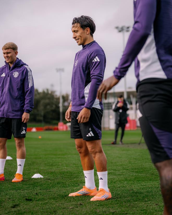 这位阿根廷国脚自今年二月初以来便一直缺阵,当时他在对阵水晶宫的比赛中膝盖受伤。随后利马很快接受了手术,并在过去的近九个月里一直在卡灵顿训练基地进行艰苦的康复训练。如今,他的回归进程已经取得了重大进展,从今天曼联发布的训练照来看,利马已经能够再次踏上草地和队友一起进行有球训练。
